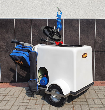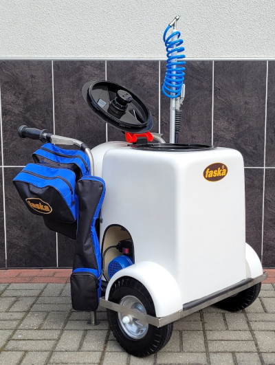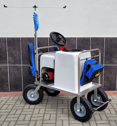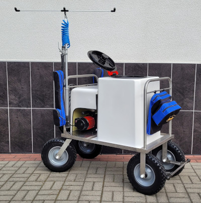 Wykonanie konstrukcji wózka ze stali nierdzewnej, koła ze spienionego poliuretanu, zbiornik z laminatu odporny na wszelkie środki dezynfekcyjne.